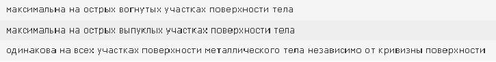 Ответ: максимальна на острых участках поверхности тела.