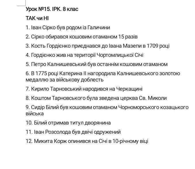 1. Ні - Іван Сірко був родом з Полтавщини.