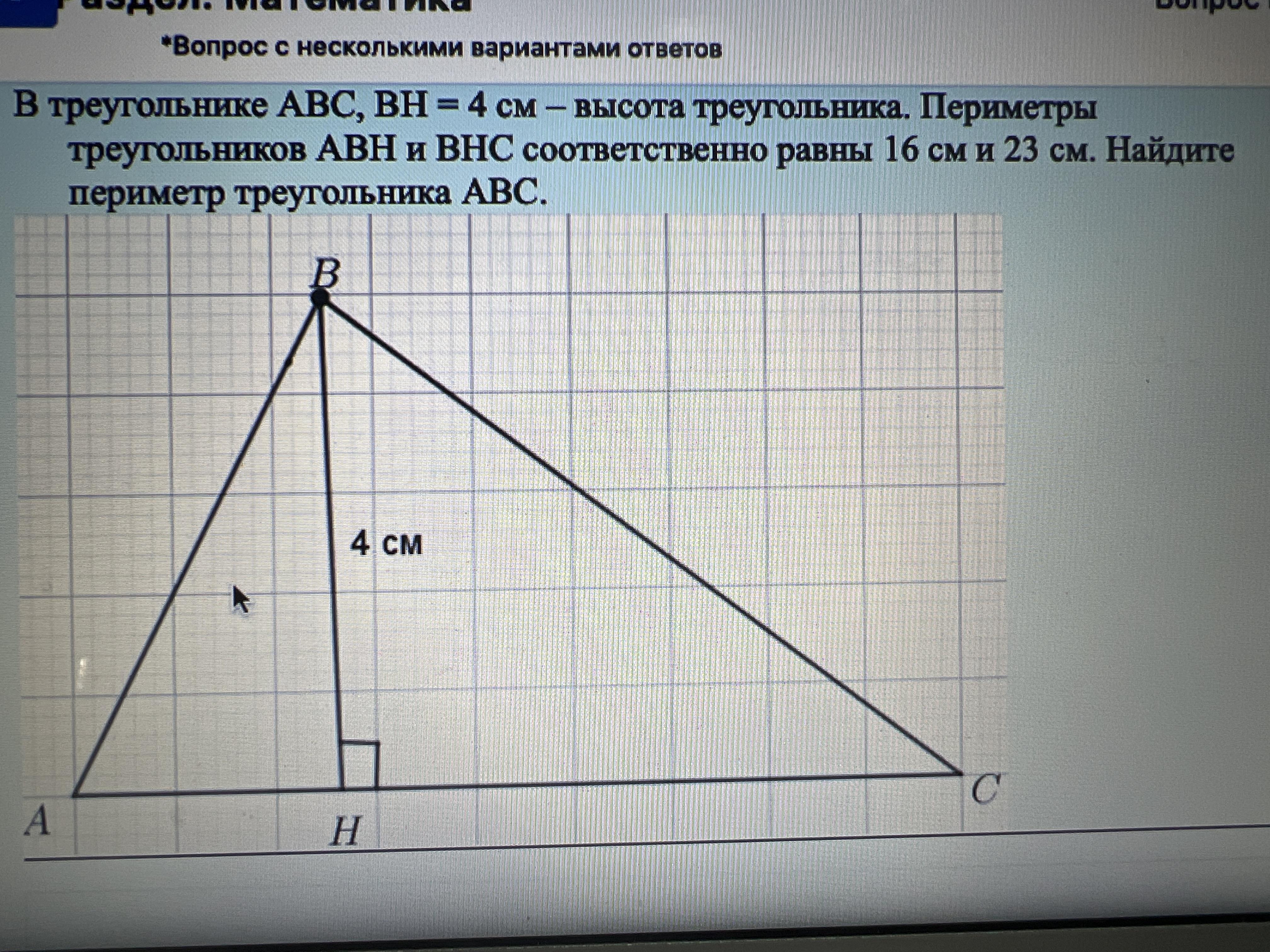 Р(АВС)=АВ+АН+ВС+НС=12+19=31 см