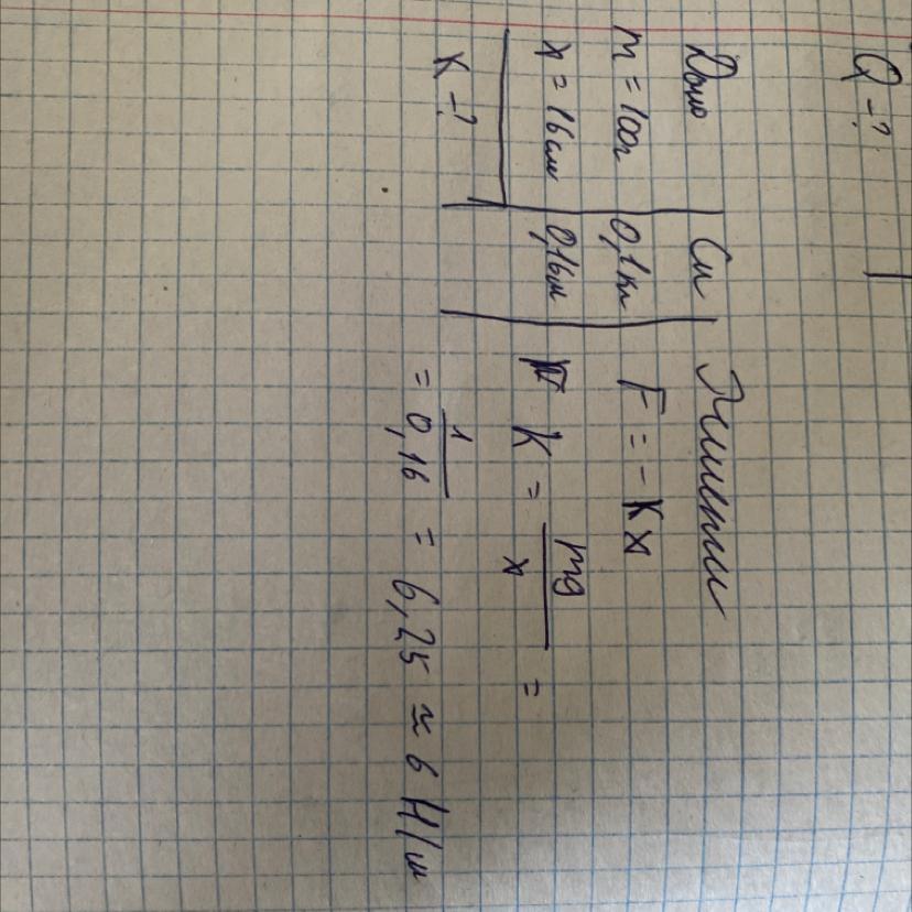 Визначте жорсткість пружинки динамометра до якого підвісили тіло масою 100г і вона видовжилась на 16 см
