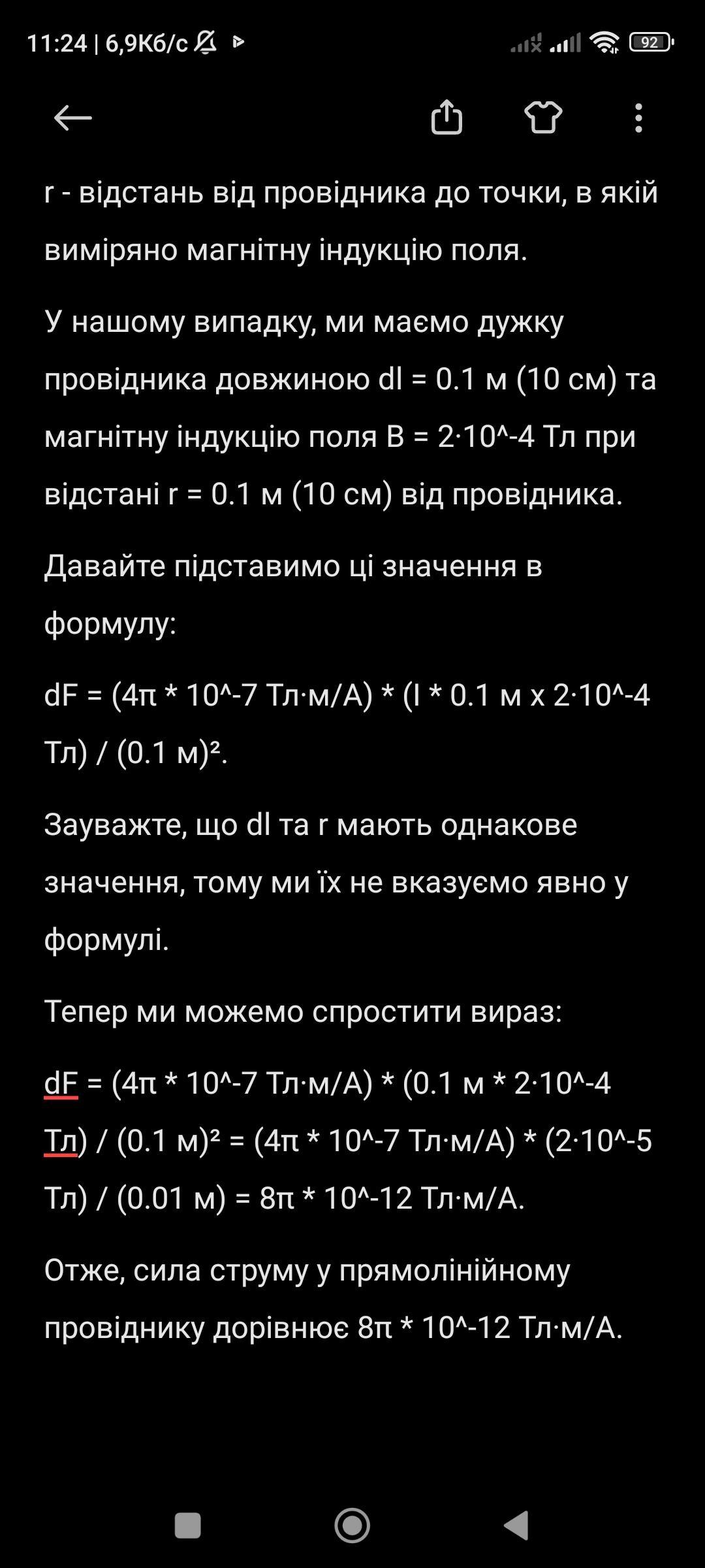 Знайти силу струму у прямолінійному провіднику, якщо на віддалі 10 см від нього магнітна індукція поля дорівнює 2·10^-4Тл.