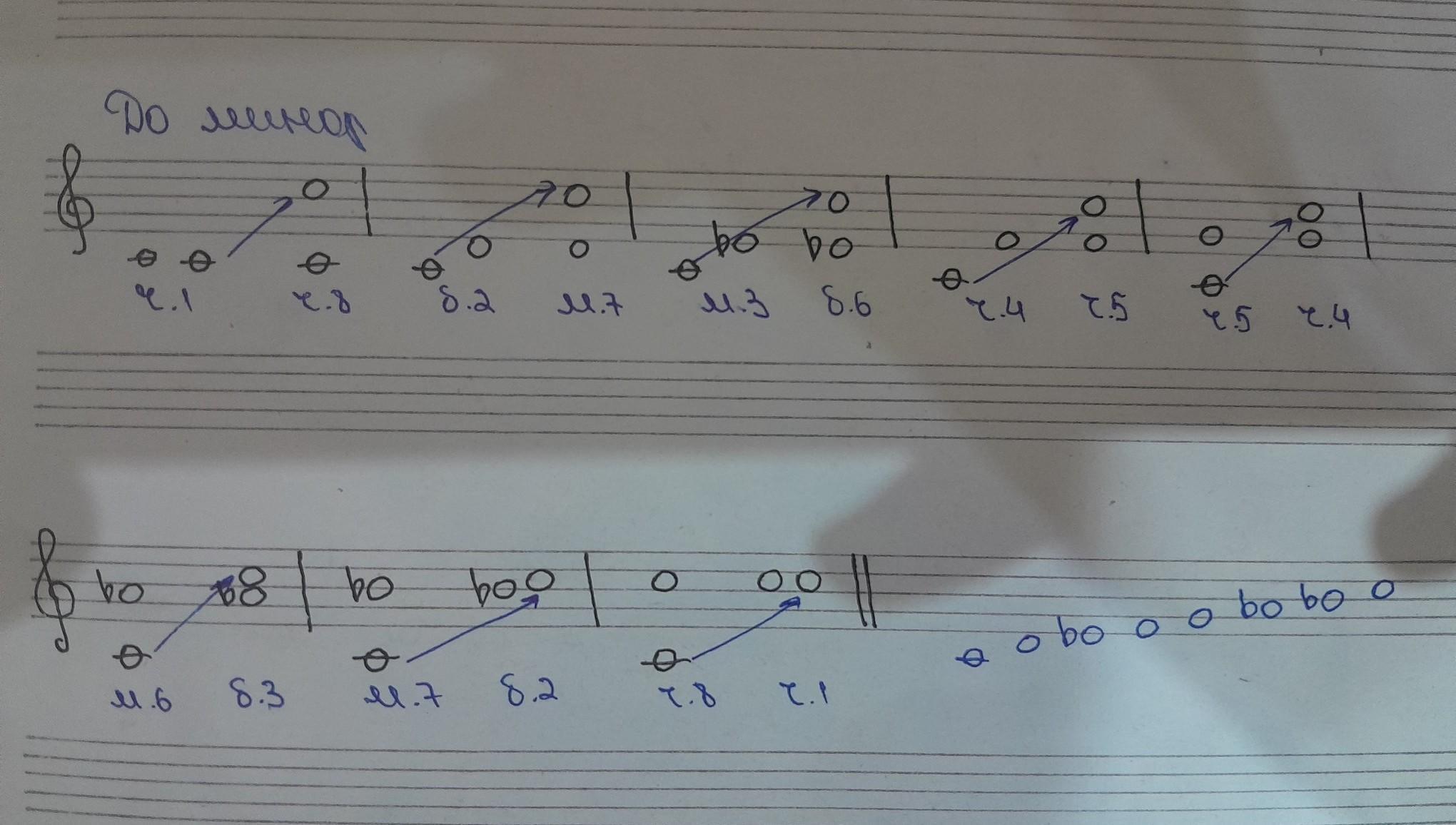 Пишем по существующим нотам (то, что в синем в конце), и поэтому я не написала некоторые обращения, так как их нет в нашей гамме
