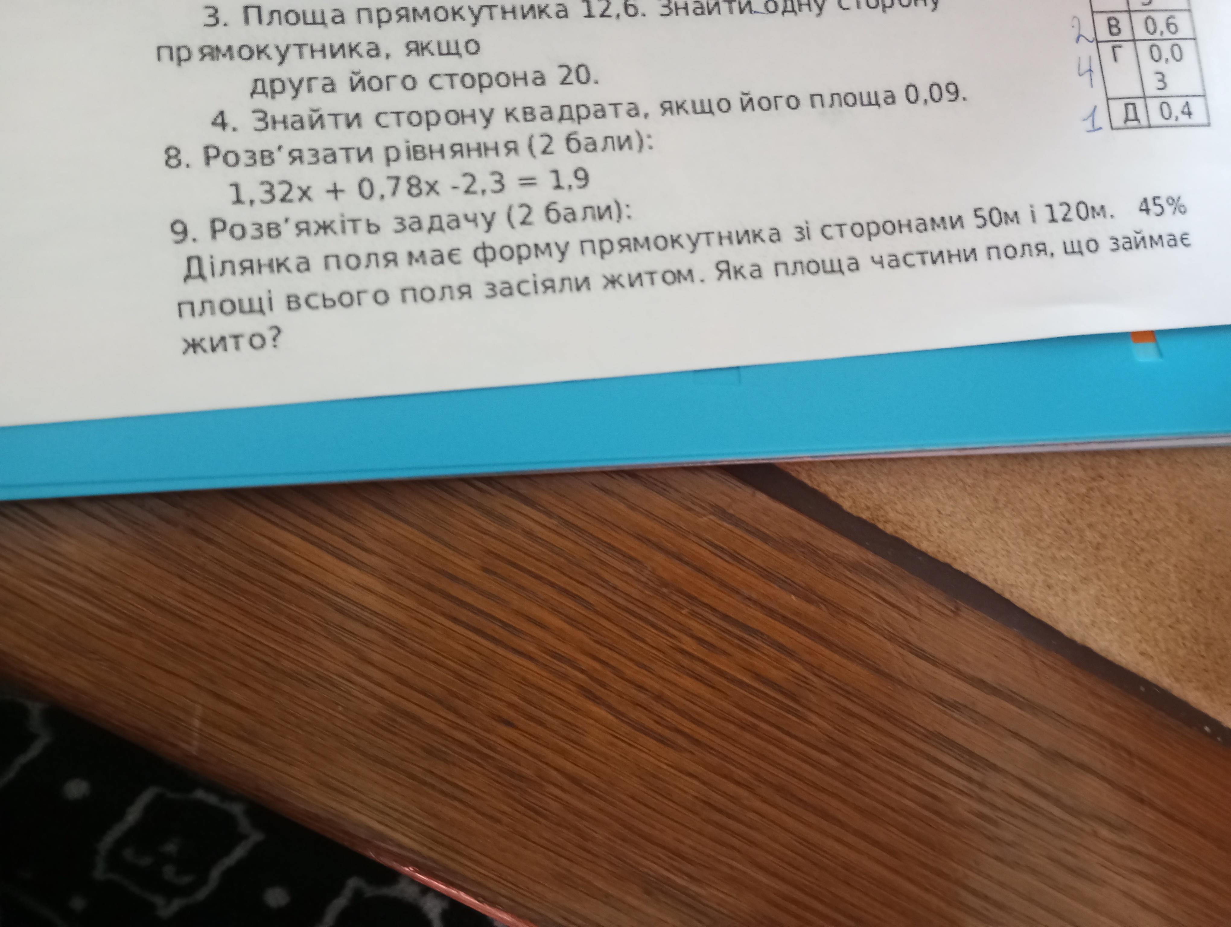 Ділянка поля має форму прямокутника зі сторонами 50 м і 120 м .45 процентів площі всього поля засіяно житом. яка площа частини поля що займає жито