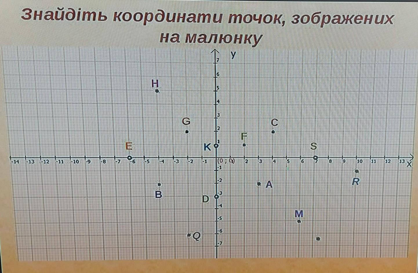 E(-6;0), H(-4;5), B(-4;-2), G(-2;2), Q(-2;-6), K(0;1), D(0;-3), F(2;1), A(3;-2), C(4;2), M(6;-5), S(7;0), R(10;-1).