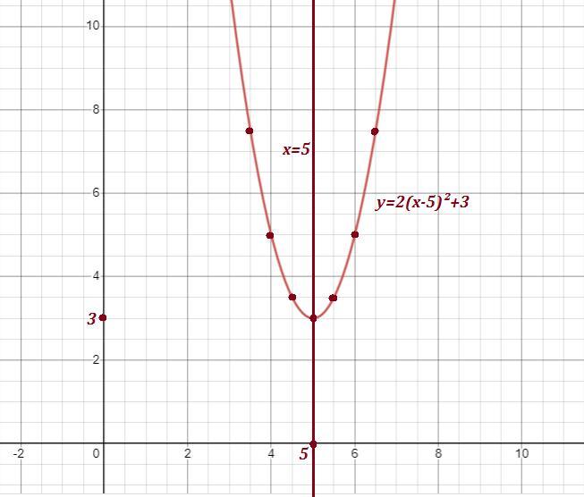 А потом сдвигаем последнюю параболы вдоль оси ОУ на 3 единицы вверх , получим заданную параболу у=2(х-5)²+3 .
