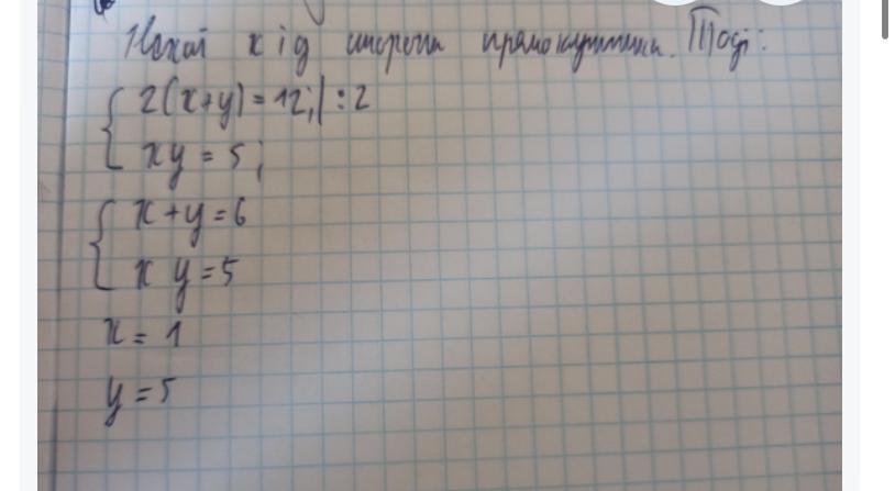 ДОПОМОЖІТЬ. периметр прямокутника 12 см а його площа 5 см квадратних знайдіть сторони прямокутника. ДАМ 100 балів