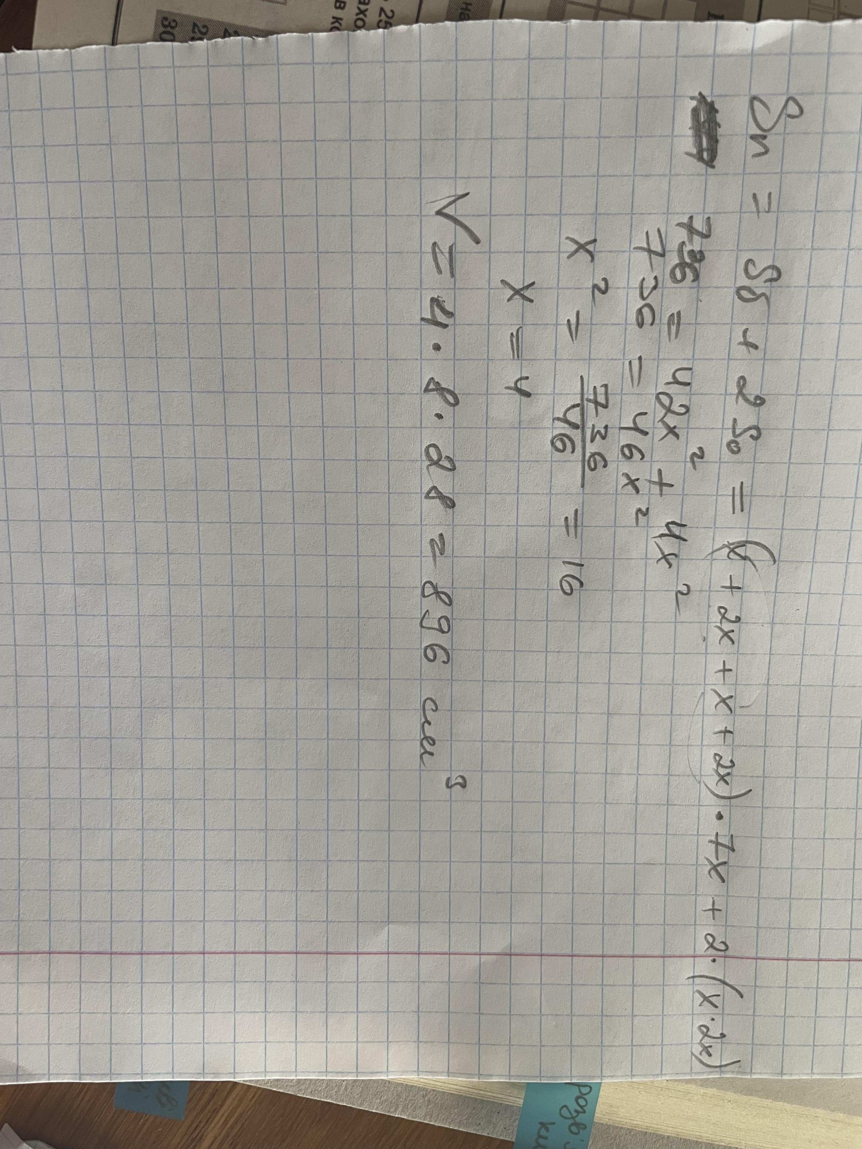 Вот на фото все написано. х, 2х и 7х - измерения паралелепипеда (из соотношения).