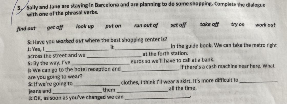 with one of the phrasal verbs.