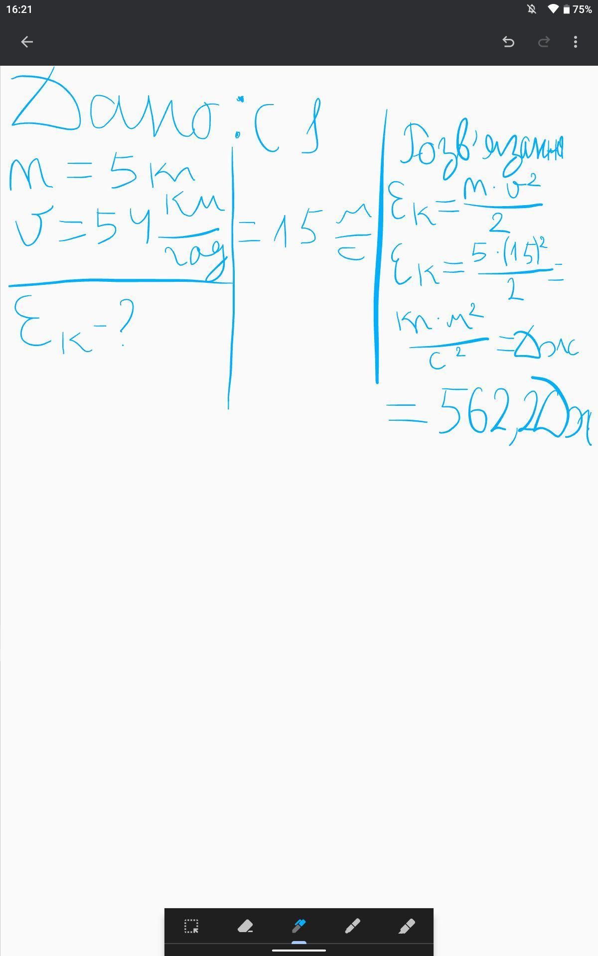 Тіло масою 5 кг кидають вертикально вгору зі швидкістю 54 км/год. Чому дорівнює кінетична енергія тіла в момент кидка?