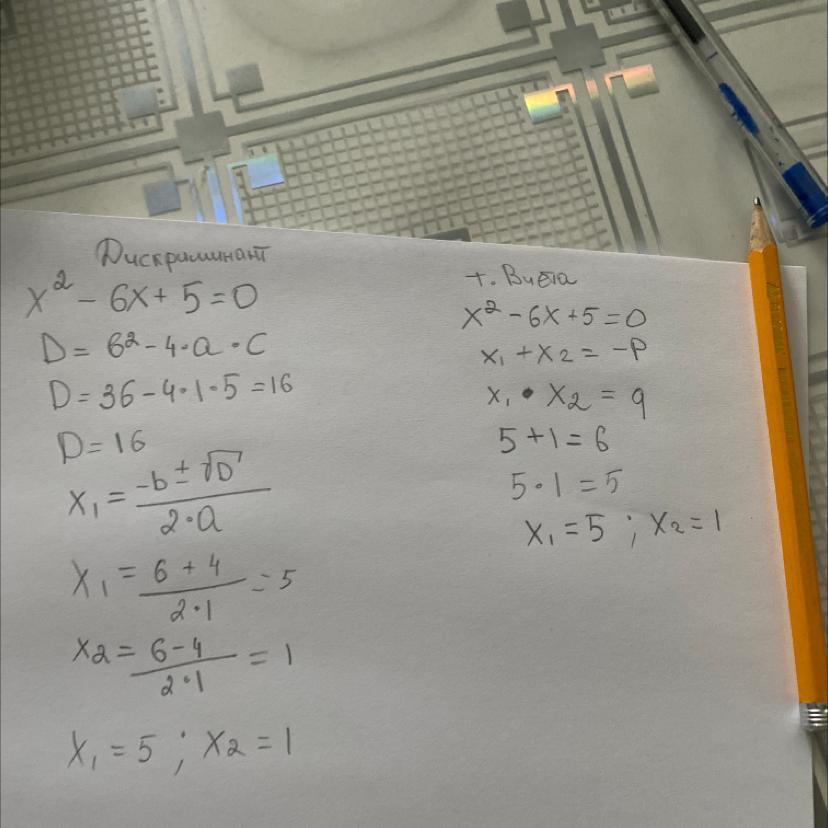 Для решения квадратного уравнения вида x^2 - 6x + 5 = 0, можно использовать формулу дискриминанта и методы решения квадратных уравнений.