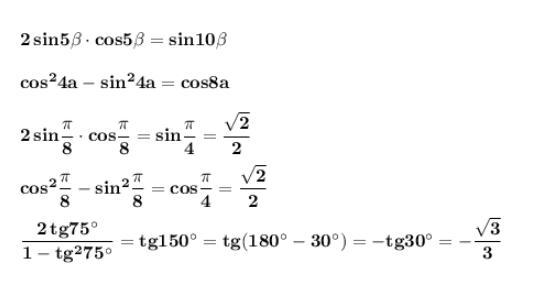 Применяем формулы тригонометрии , формулы двойных углов, формулы приведения .