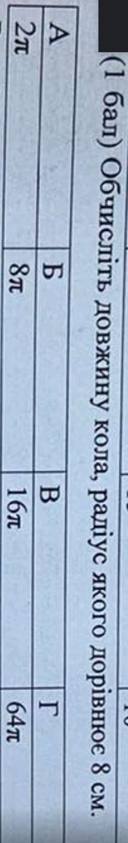 Варіант Б: Довжина кола з радіусом 8 см дорівнює 16π см.