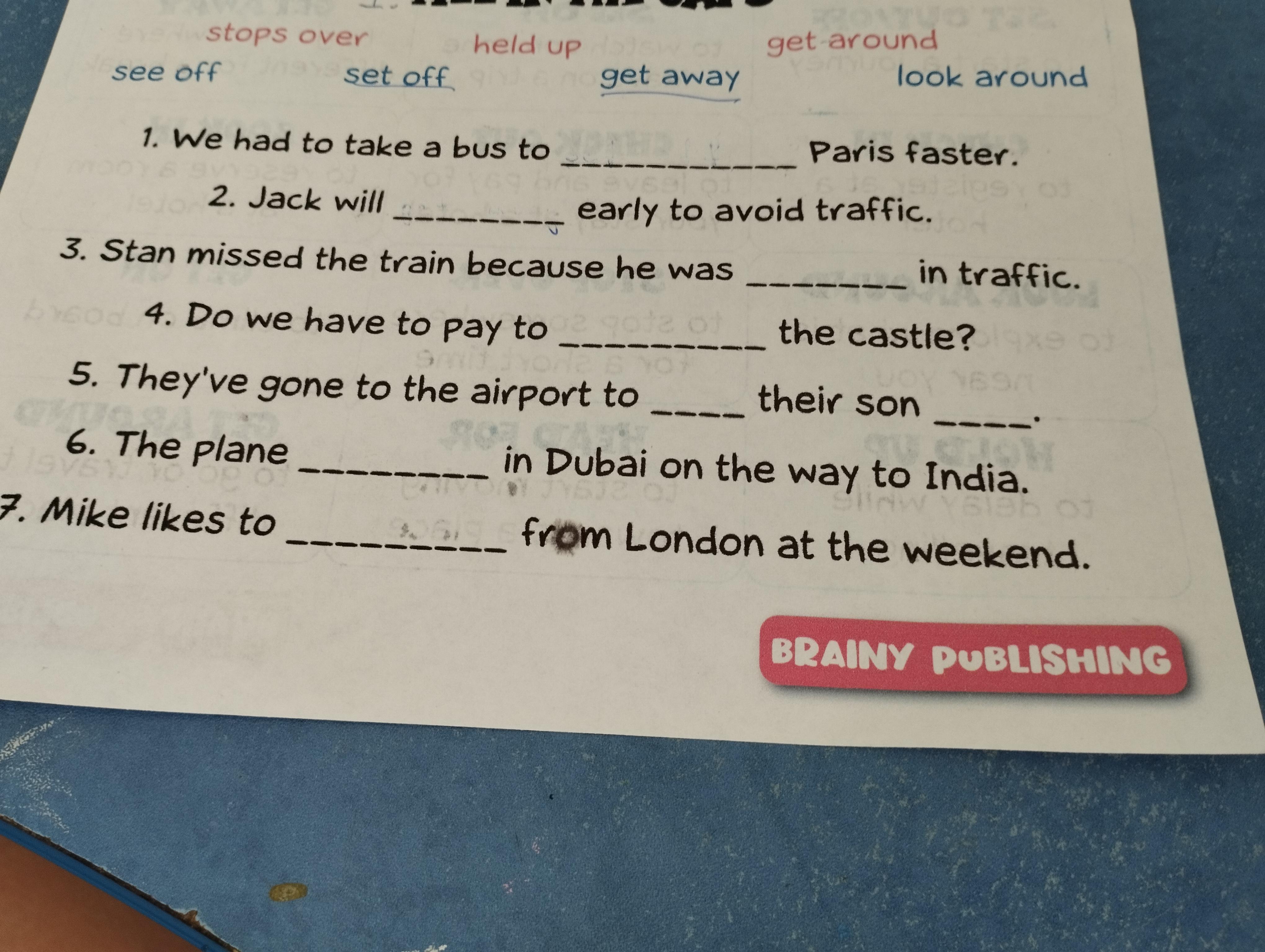 1. look around 2.get away 3. stops over 4.