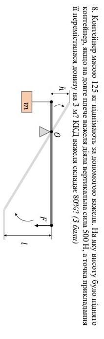 h1=F*h2*η/(m*g)=500*3*0,8/(125*10)=0,96м