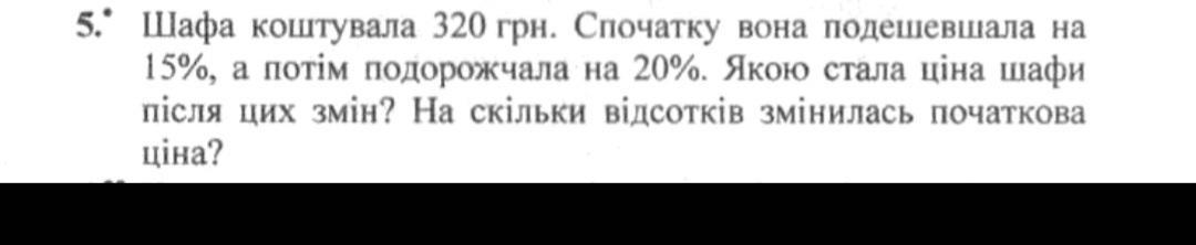 5 ) 326,4 - 320 = 6,4 ( грн ) - зміна ціни шафи