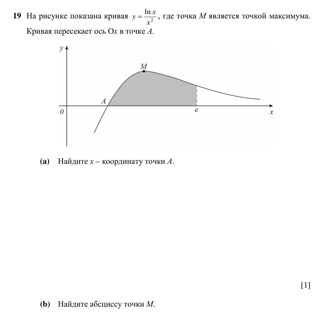 а) чтобы найти координаты точки А. найдем ln(x) / x² = 0, то есть ln x = 0