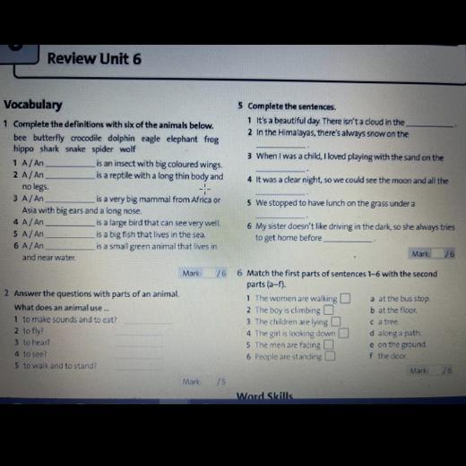 2. A snake 3. an elephant 4.an eagle 5. A shark 6. A frog
