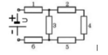 Определите общее сопротивление R участка цепи если R1 = R2 = R5 = R6 = 3 Ом R3 = 20 Ом R4 = 24 Oм. Чему равна сила тока и напряжение в каждом резисторе, если к участку цепи приложено напряжение 36 В.