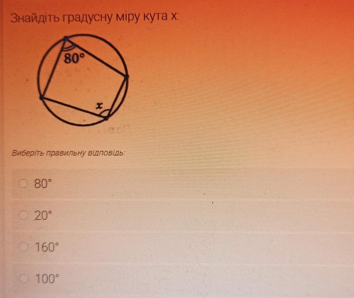 Сума протилежних кутів вписаного чотирикутника дорівнює 180°