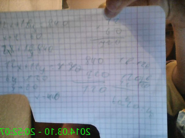На изготовление 60 тетрадей двух видов пошло 840 листов бумаги.На каждую тетрадь одного вида требовалось 12 листов,а на тетрадь другого вида - 18 листов.Сколько изготовили тетрадей каждого вида? Реши уравнением))