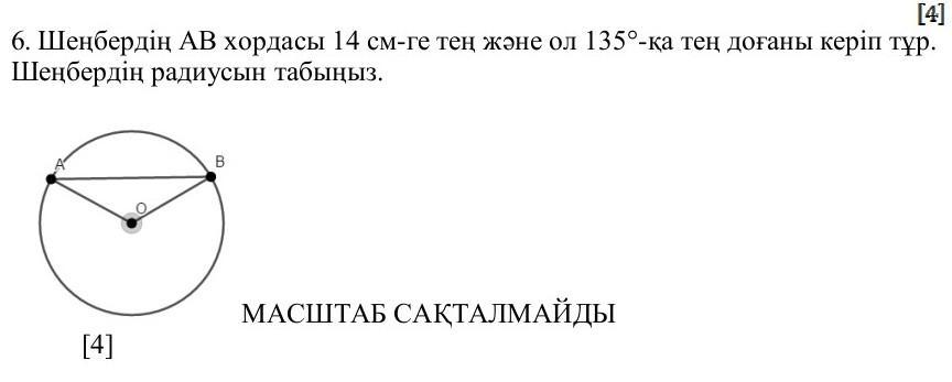 6. Хорда АВ окружности равна 14 см и опирается на дугу 135°. Найдите радиус окружности.
