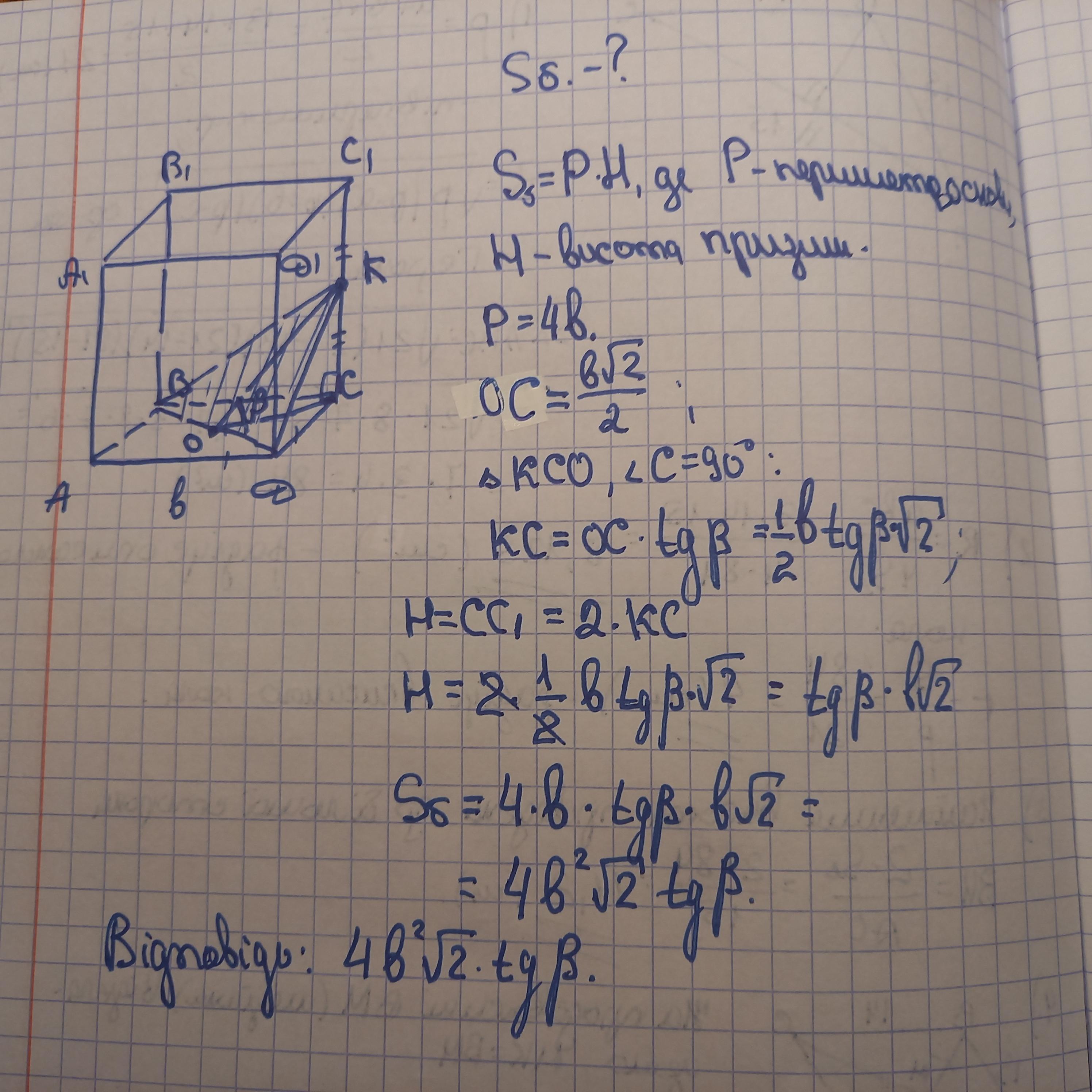 Sбоковое=(4b)•(b√2•tg в)