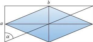 Так середини сторін прямокутника з'єднані послідовно, отриманий чотирикутник є ромбом, площа якого можна знайти через діагоналі. У разі діагоналями ромба є сторони прямокутника.