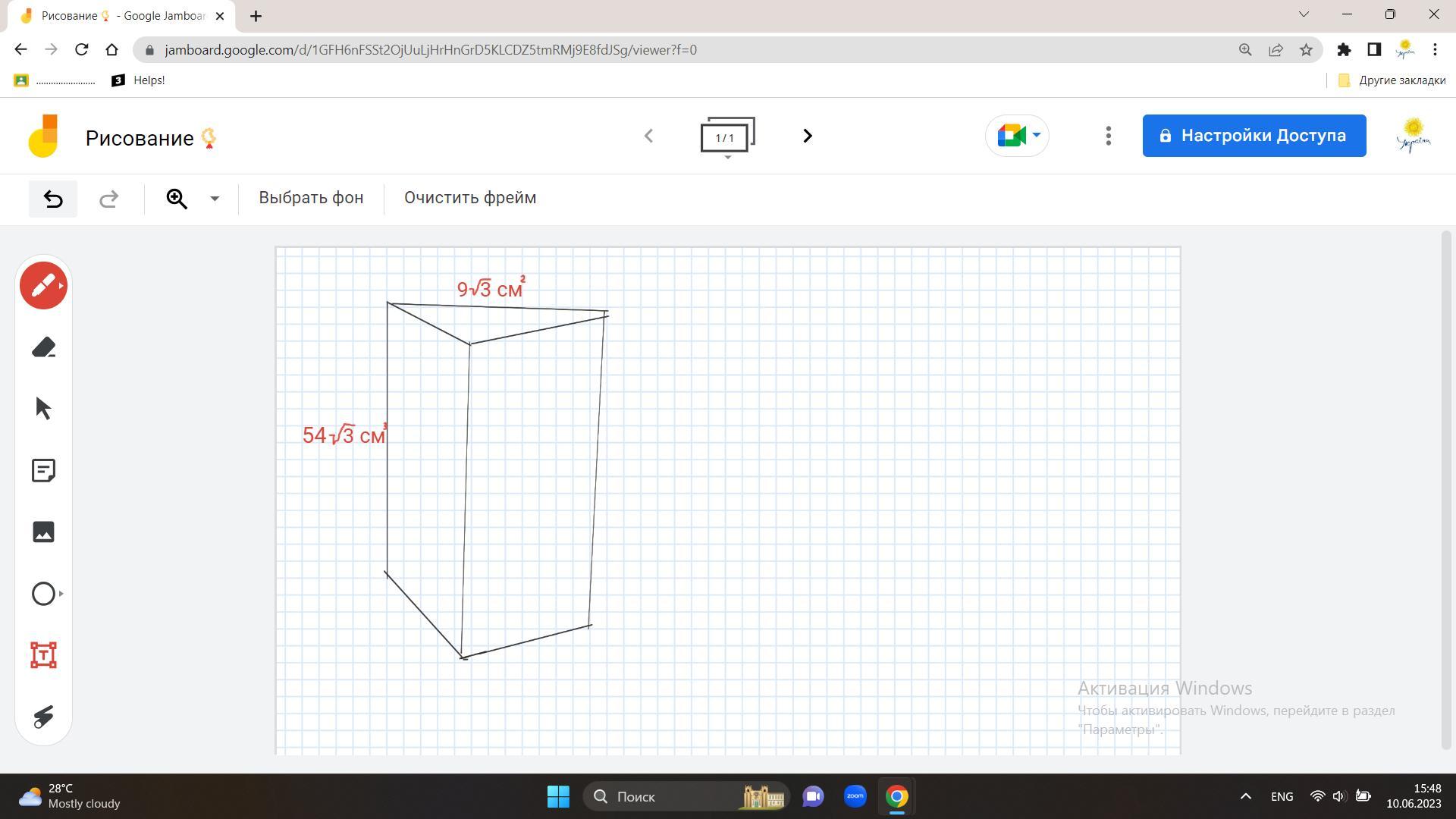 . Звідси a2=9⋅4=36. Тоді сторона основи 6. Так як бічні грані квадрати, то висота призми дорівнює стороні основи і дорівнює 6. Об'єм призми V=Sоснh=9√3 ⋅ 6=54√3