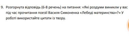 Які роздуми виникли у вас під час прочитання поезії Василя Симоненка лебеді материнства? Розгорнута відповіль 8-10 речень. ТЕРМІНОВО ДОПОМОЖІТЬ БУДЬ ЛАСКА ДАЮ 50 БАЛІВ!