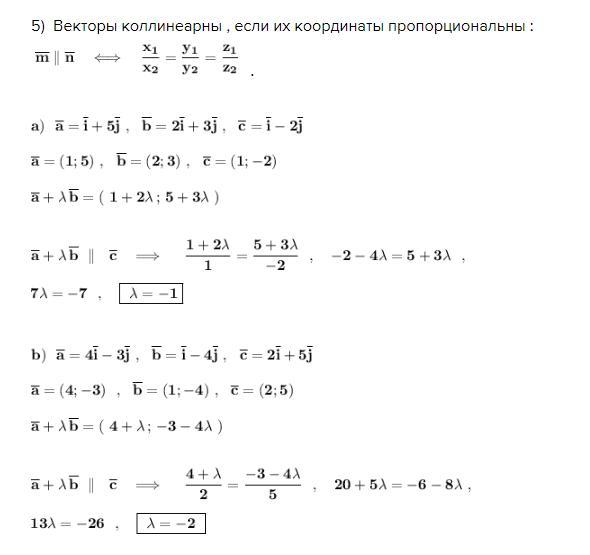 5) Векторы коллинеарны , если их координаты пропорциональны :