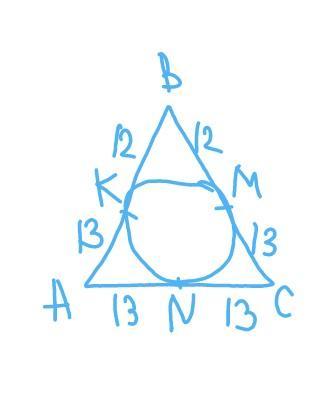 АВ=ВС=ВК+АК=12+13=25 см