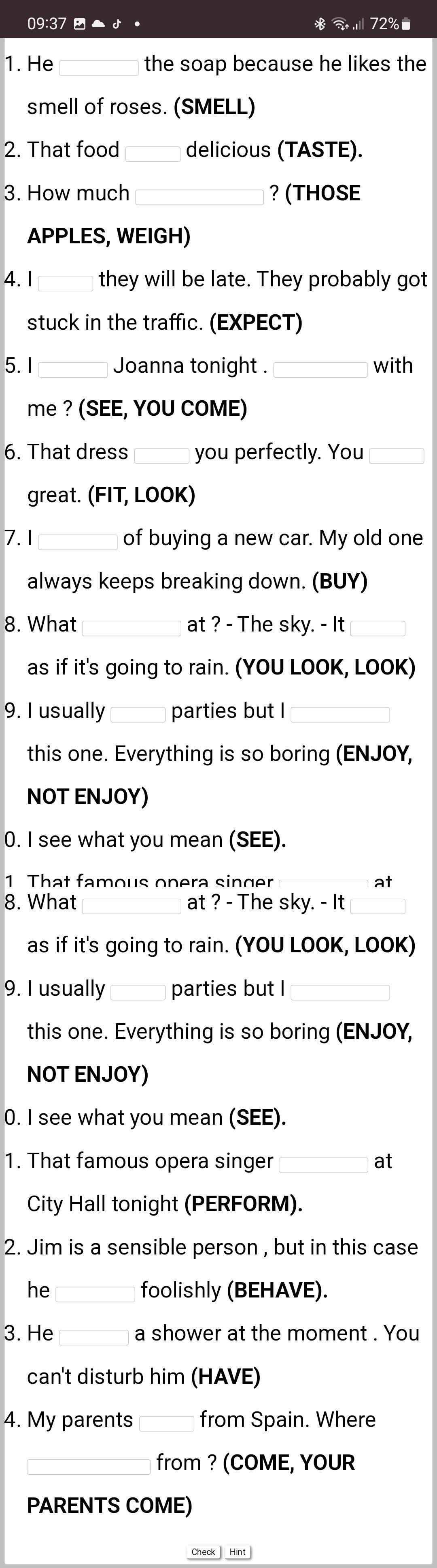 30 БАЛЛОВ Поставьте глаголы в скобках в правильное время. Используйте настоящее время Simple или Continuous