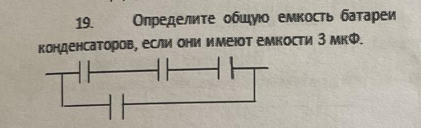 Сi=3 мкФ; C₁₂₃=1/(1/C₁+1/C₂+1/C₃)=1/(1/3+1/3+1/3)=1 мкФ; Coбщ=C₁₂₃+С₄=