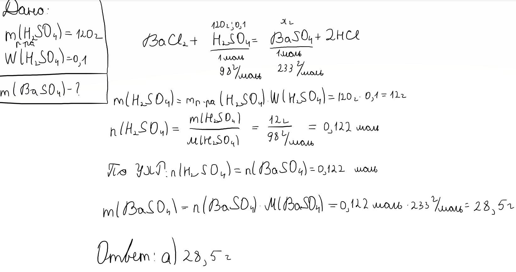 m(H₂SO₄) = m(р-нH₂SO₄) * w(H₂SO₄) = 120 * 0,1 = 12 г