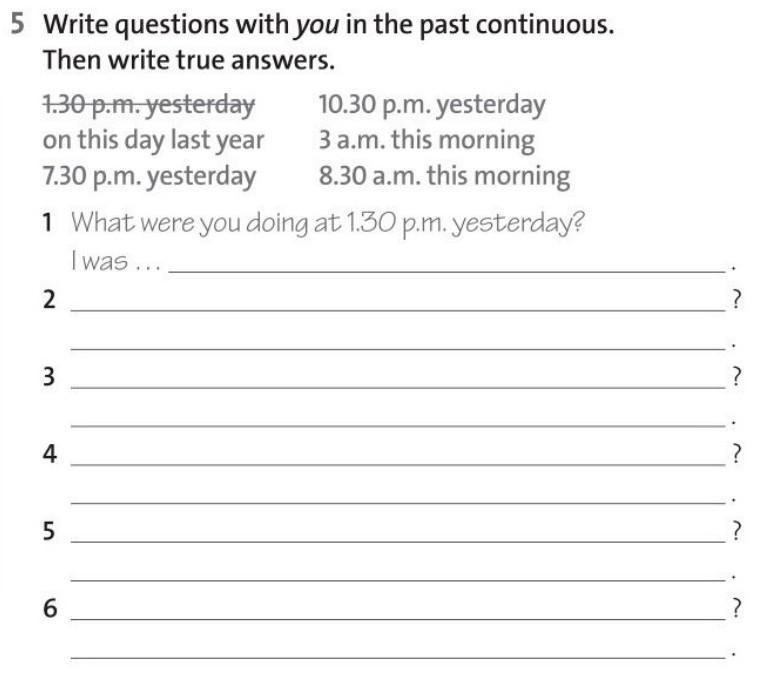 3 What were you doing at 7.30 p.m. yesterday?