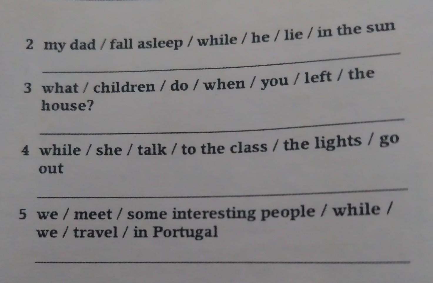 Use the prompts to write sentences using the past simple and past continuous in every sentence.