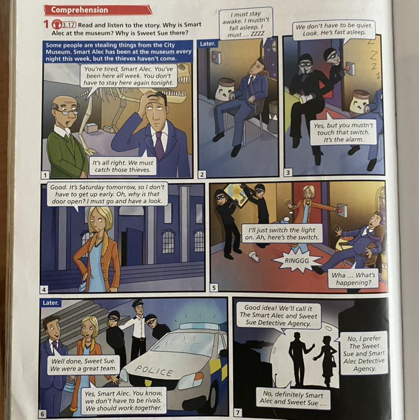 A museum employee (or worker) named Smart Alec guards the museum for a week to prevent thieves from getting inside the museum and stealing something. From exhaustion, Smart Alec falls asleep right at the workplace. Thieves notice that the man is sleeping, so they are not afraid to make noise. Meanwhile, near the museum is a woman named Sweet Sue. She notices that the door to the inside of the building is open, so she goes inside. She mistakes the alarm button for a light switch and activates the alarm, which wakes up Smart Alec. All in all, the thieves were caught, and the main characters agree that they should work together, because they make a great team.