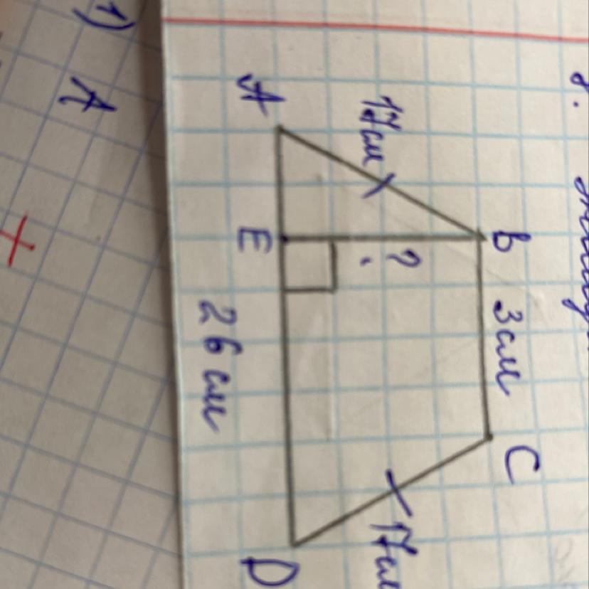 АЕ=(АD-BC)/2=(26-3)/2=23/2 см