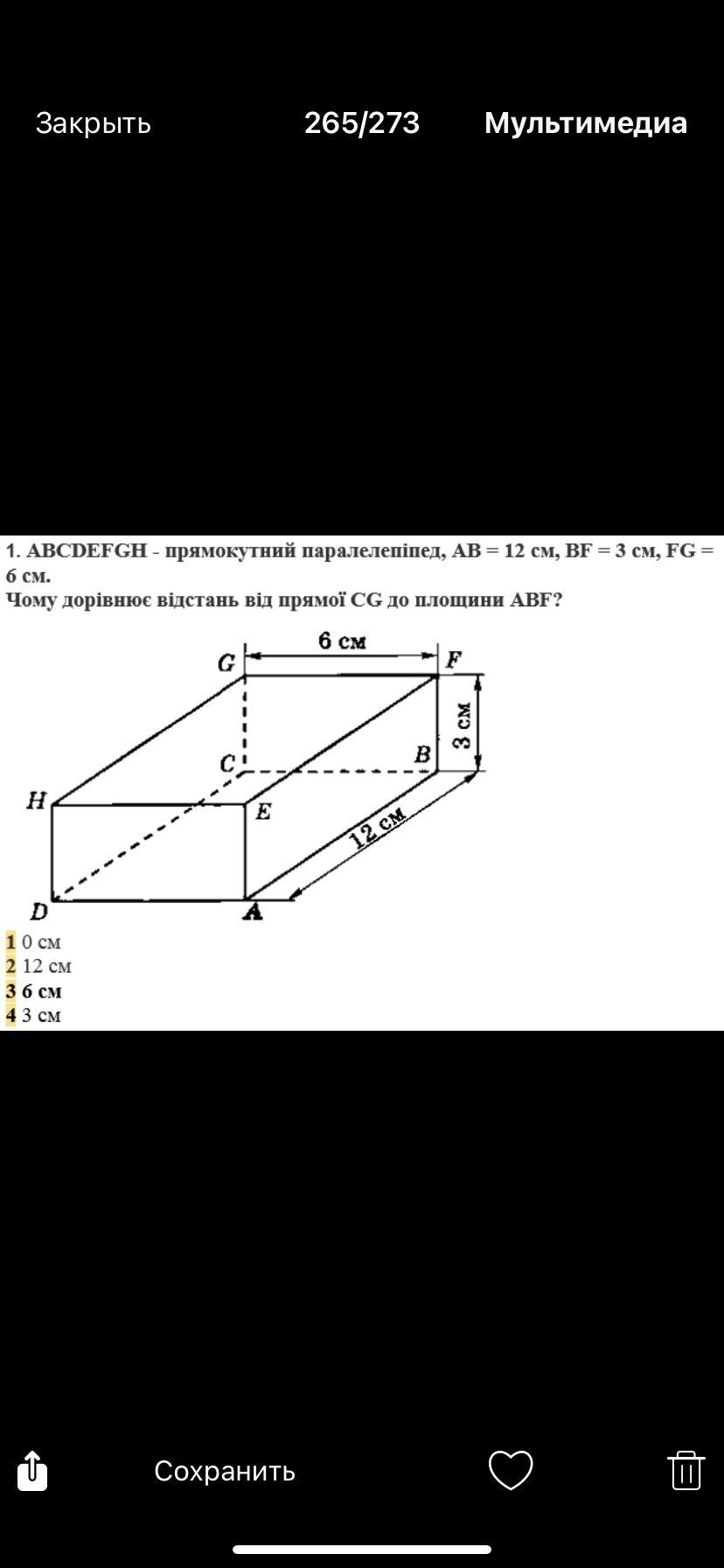Расстояние от прямой CG до плоскости ABF равно длине перпендикуляра FG ( или CB) , то есть 6 см .