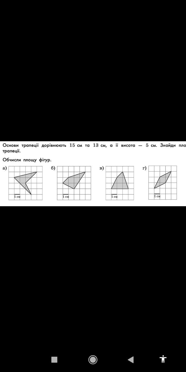Найдите пожалуйста площадь этих 4ёх фигур, не обращайте внимания на верхнюю задачу, даю 30 баллов!!
