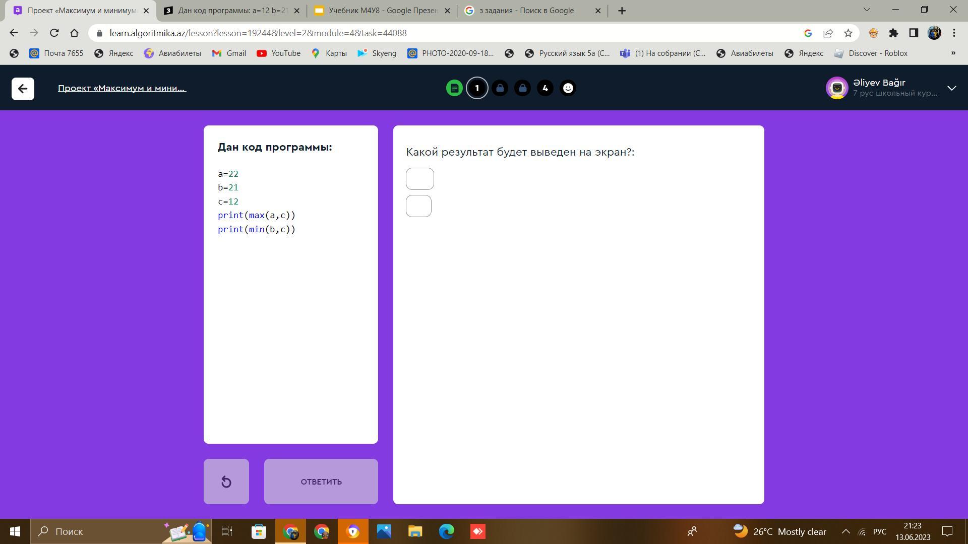 Какой результат будет выведен на экран?: