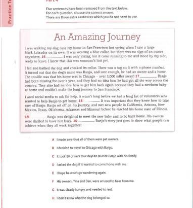 17. C It took 20 drivers four days to reunite Banjo with his family.