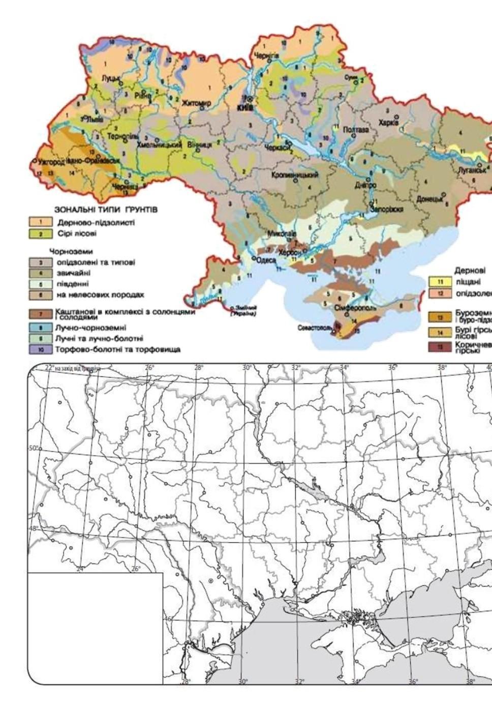 Таким чином, типи ґрунтів та відповідні географічні широти їхнього розповсюдження на рівнинній частині України мають наступний відповідності: