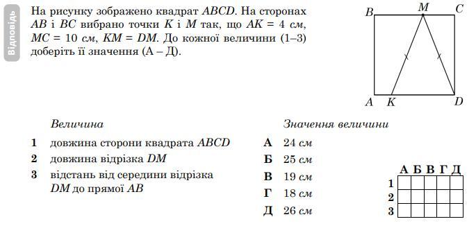 MC = 10 см, KM = DM. До кожної величини (1–3)