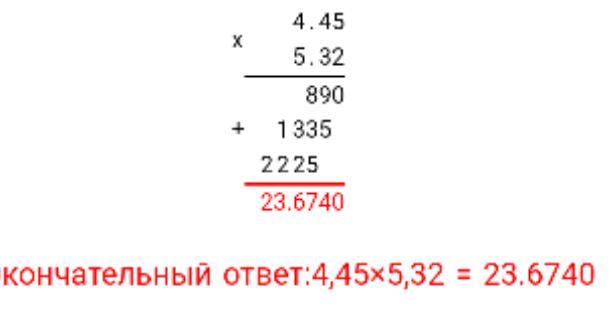 Помножте, будь ласка, 4,45 та 5,32 у стовпчик.