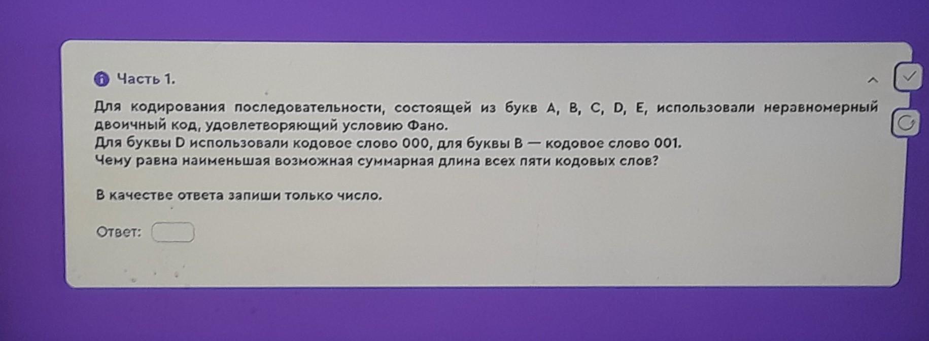Для наименьшей возможной суммарной длины всех пяти кодовых слов нужно определить коды для оставшихся трех букв таким образом, чтобы не было префиксного совпадения между кодами (условие Фано).