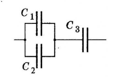 Визначити ємність батареї конденсанторів,яка зображена на схемі,якщо С1=С2, С2=2 нФ, С3 = 500 пФ.