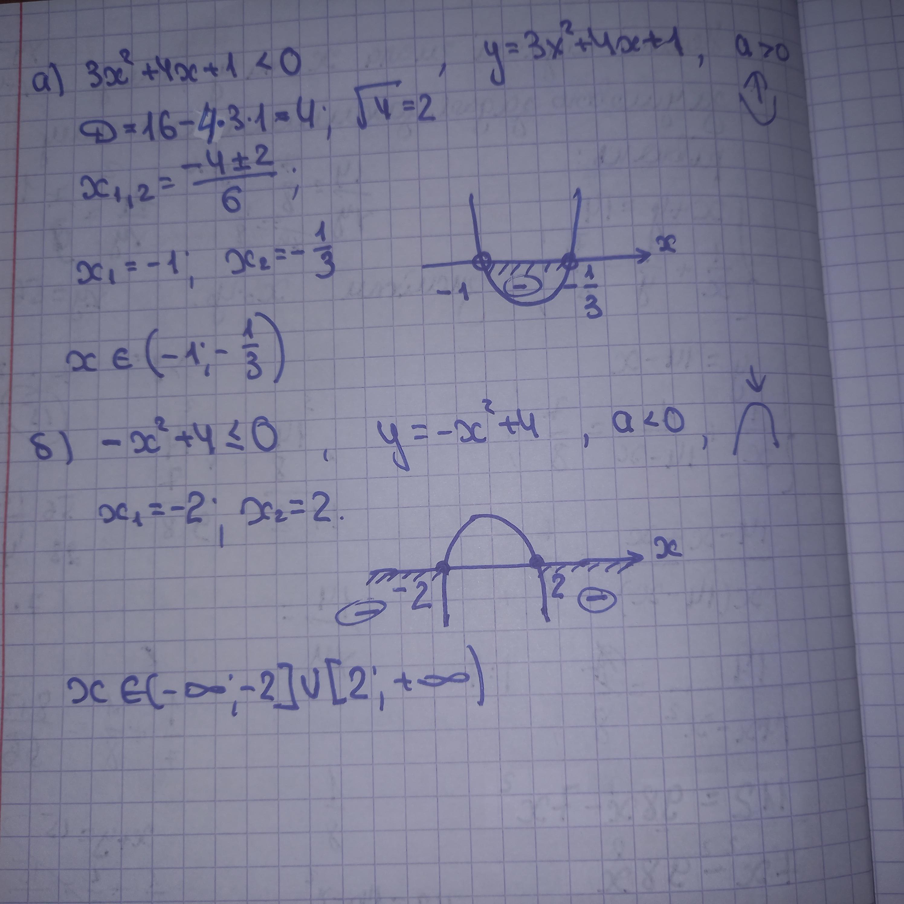 Оскільки в нас парабола вітками вверх, значить що її кінці в додатій частині (по вісі y). Нам треба < 0, тому відповідь буде x ∈