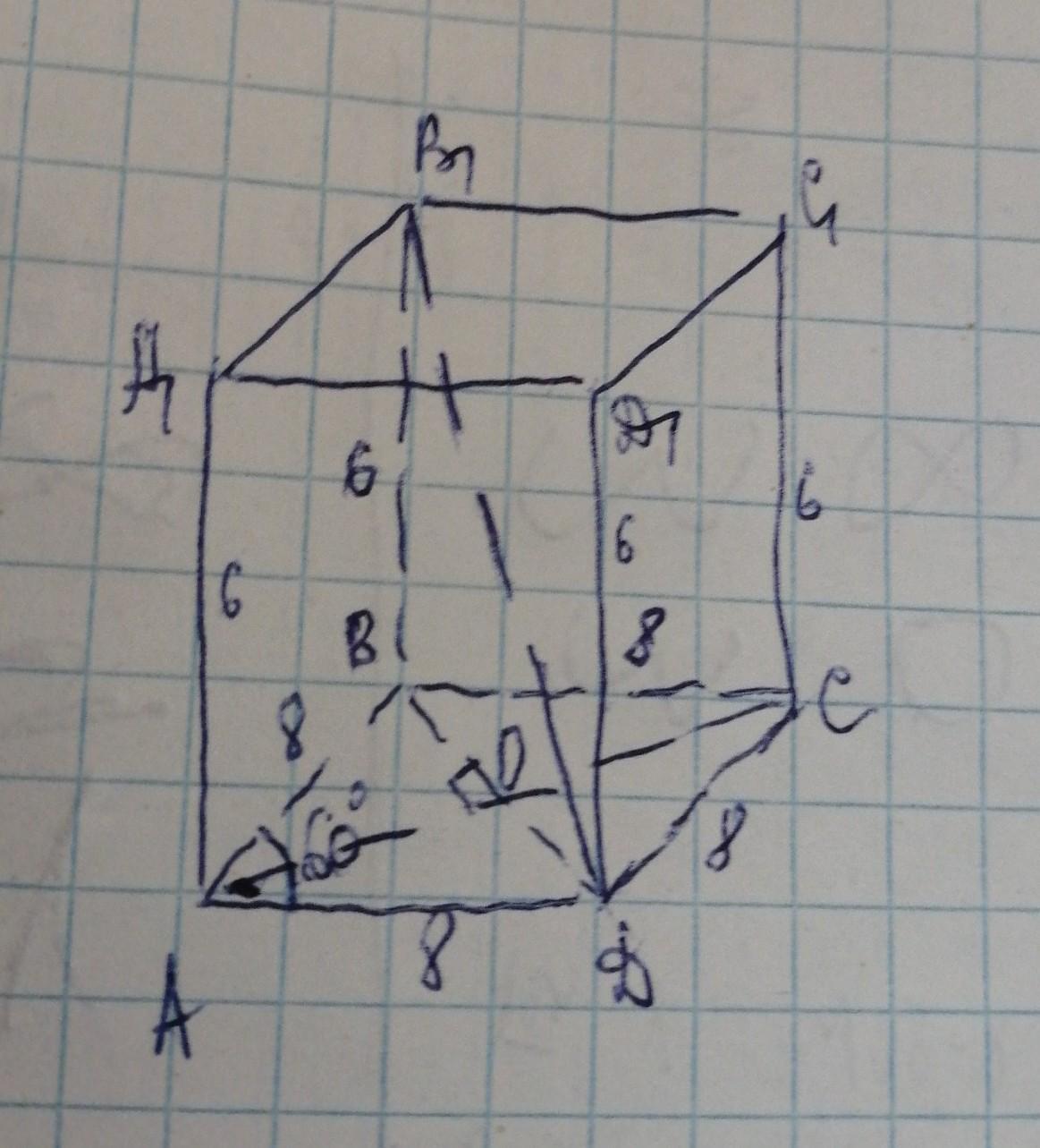 В1D=√(BD²+B1B²)=√(8²+6²)=√100=10 см