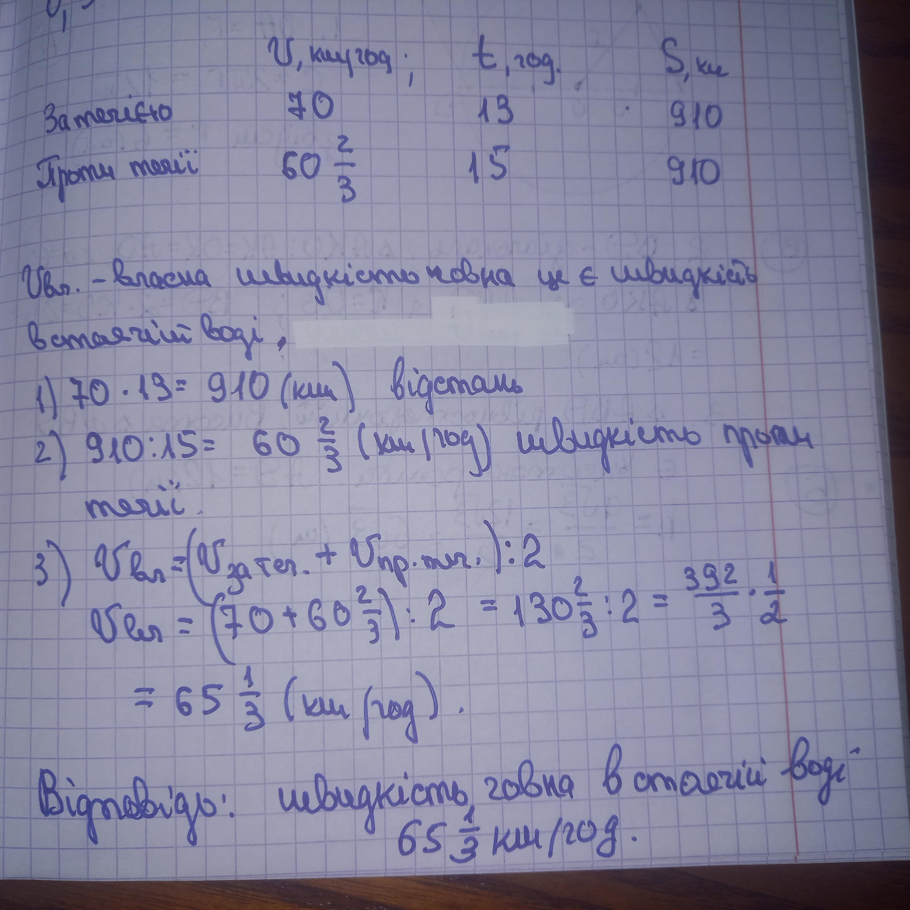 Срочно!!!Човен плив 13 годин за течією річки тим самим шляхом що і 15 годин проти течії. Швидкість човна становить 70 км/год. Знайдіть швидкість км/год стоячої води.